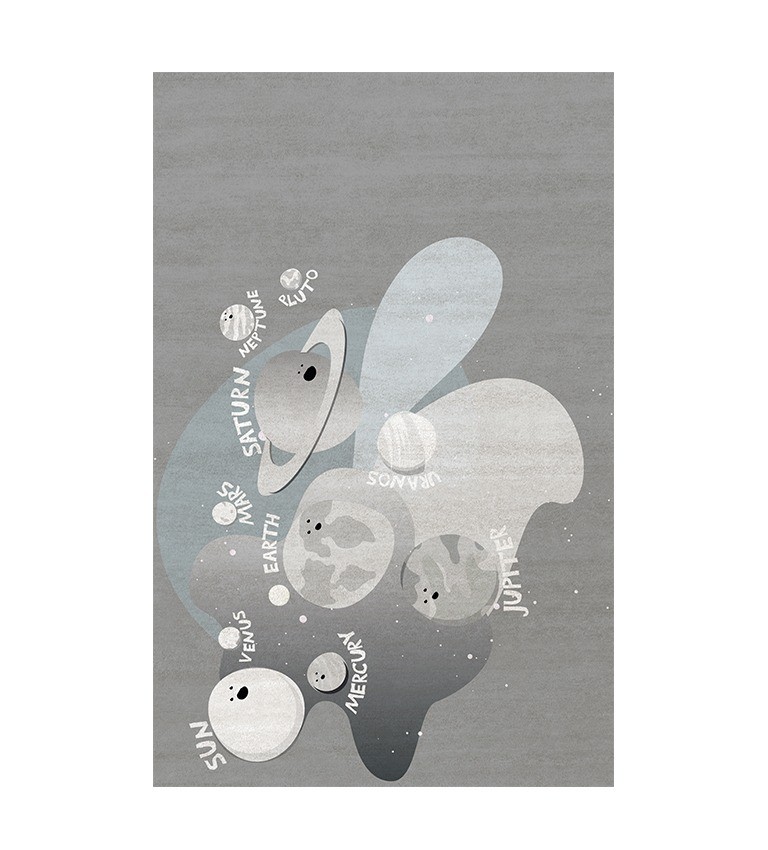 To bring harmony to the rest of the project, they added a blue desk in the same color and lines as the bed, with elegant gray chairs, that perfectly match the romantic gray wallpaper.