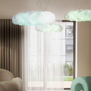 The Cloud Lamp is made from an innovative material, created by Circu, designed in several layers and fine coating with a fire retardant. Inside, a light and sound system are controlled by a mobile app (light) or a remote with several options: choice of music, light effects, and sleep time. This lighting design has an RGB light and speakers. The sound system can be controlled by a mobile app that connects with the cloud lamp by Bluetooth.