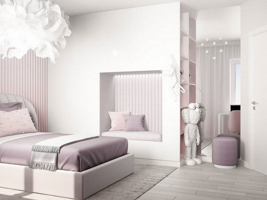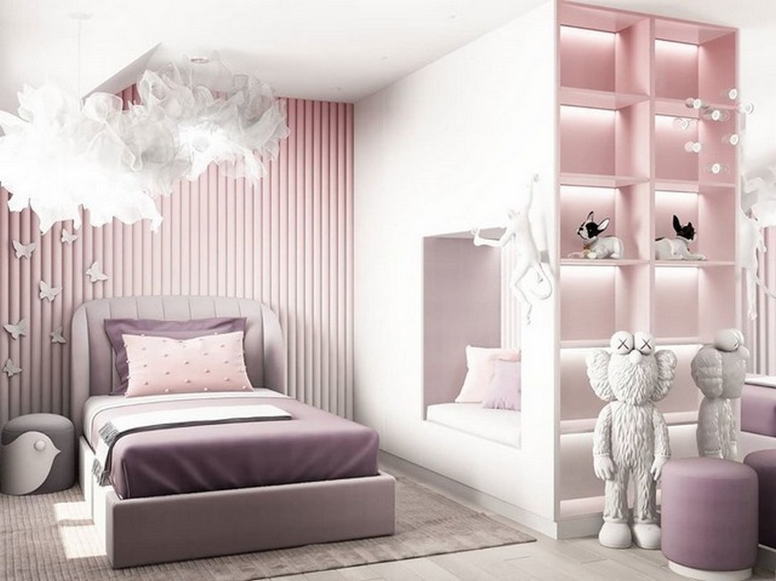 For example, this bedroom project created for a little girl transpires the latest trends for kids bedrooms. the pastel pink colour palette mixed with the curved shapes of the furniture gives the bedroom a contemporary vibe.
