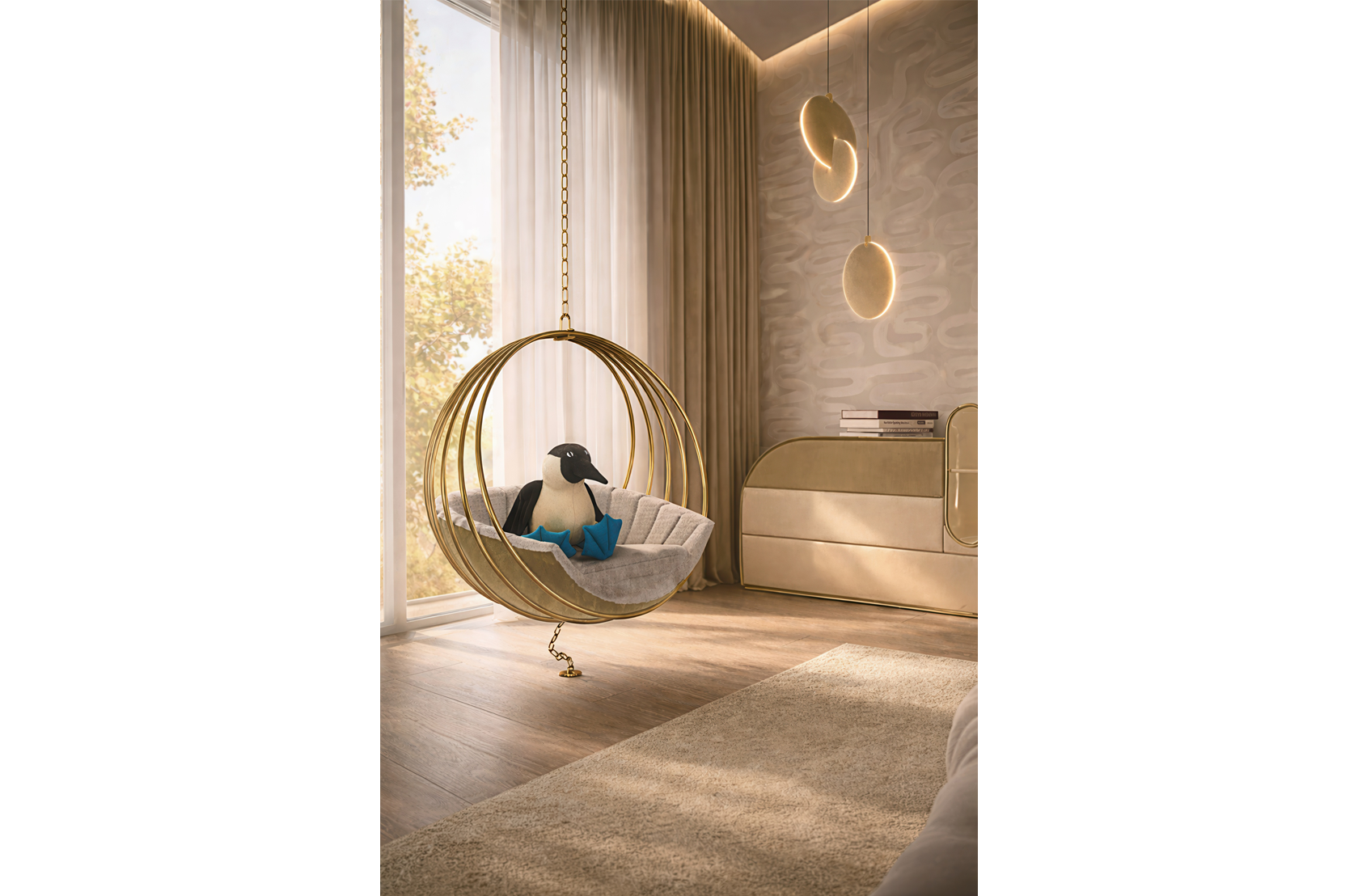 Built-in glossy lacquered wood and featuring velvet upholstery with gold plated touches on the front, the Bubble Gum Chest will give a touch of creativity and softness to your room project. For a special touch to your design, this chest also features a LED light on the back so that you can light up the room with a touch of magic.
